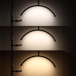 Iestatiet gaismas temperatūru 3000–5600 K no siltas līdz aukstai un pielāgojiet spilgtumu 10 soļos atbilstoši uzdevumam. Stabilā pamatne un augstumā regulējams statīvs (140–180 cm) kopā ar 64 cm loku nodrošina ērtu izgaismojumu ideālā leņķī. Integrēts tālruņa turētājs ir perfekts darba fiksēšanai vai atsauču apskatei.