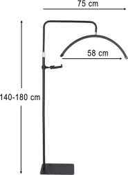 Smaga pamatne, augstums 140–180 cm un integrēts tālruņa turētājs ērtai filmēšanai un darba dokumentēšanai salonā.