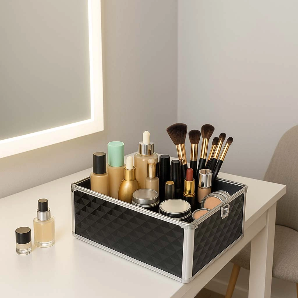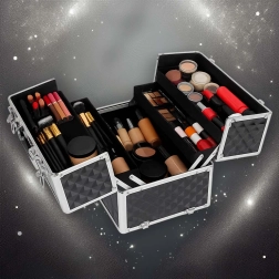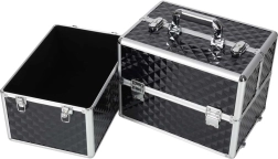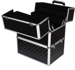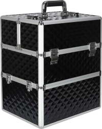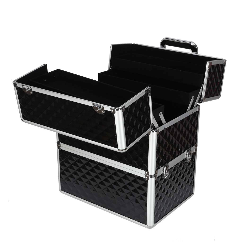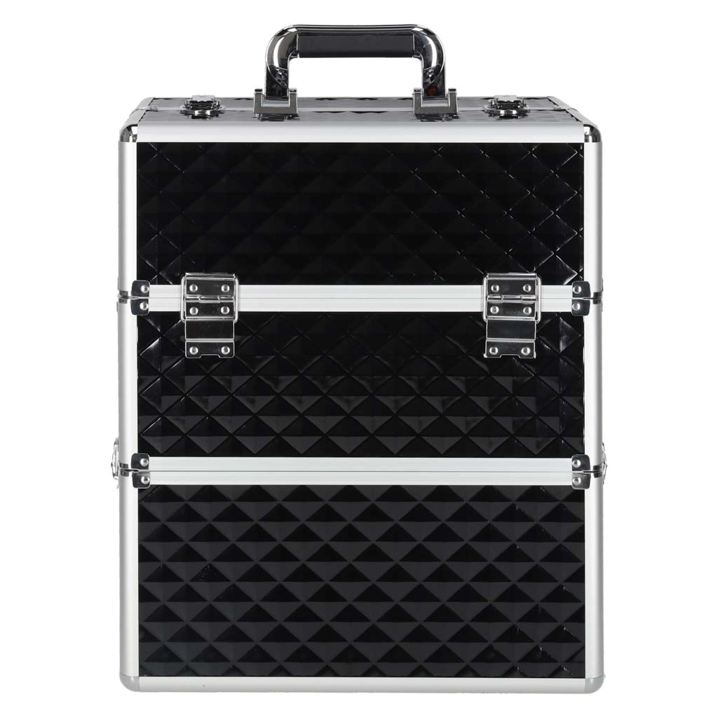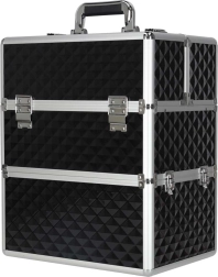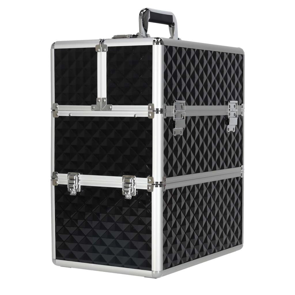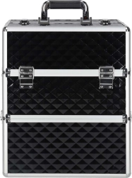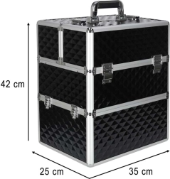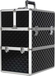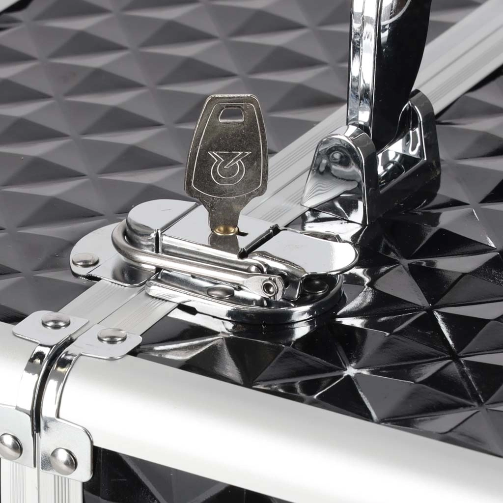 Elegantais un ietilpīgais XXL kosmētikas koferis ar dimanta rakstu piedāvā maksimālu organizāciju, izvelkamu vāku ar bīdāmām nodalījumu paplātēm un slēdzamu aizdari ar divām atslēgām. Pateicoties izturīgajai konstrukcijai, metāla rāmim un ērtajam rokturim, tas ir ideāls gan vizāžistiem, gan grima entuziastiem ceļā.