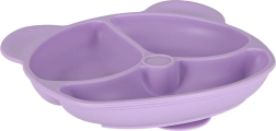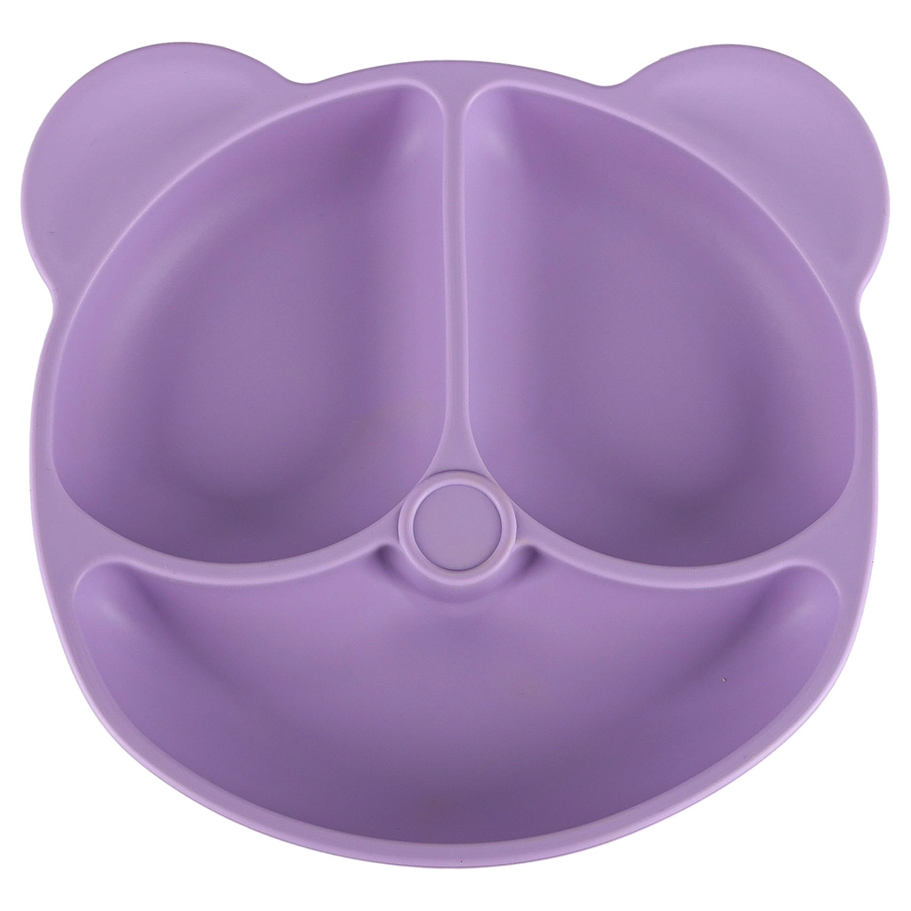 Sadalītais šķīvis lāča formā un bļoda ar piesūcekni stingri turas pie galda vai krēsliņa pults, tā samazinot negadījumus un apgāšanos ēšanas laikā.