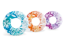 Kvalitatīvs INTEX uzpūšamais peldriņķis 91 cm diametrā ir lieliska izvēle ūdens izklaidēm un atpūtai pie baseina. Pateicoties košajam tropiskajam dizainam un uzticamai konstrukcijai, tas nodrošina drošu peldspēju un lielisku redzamību uz ūdens.