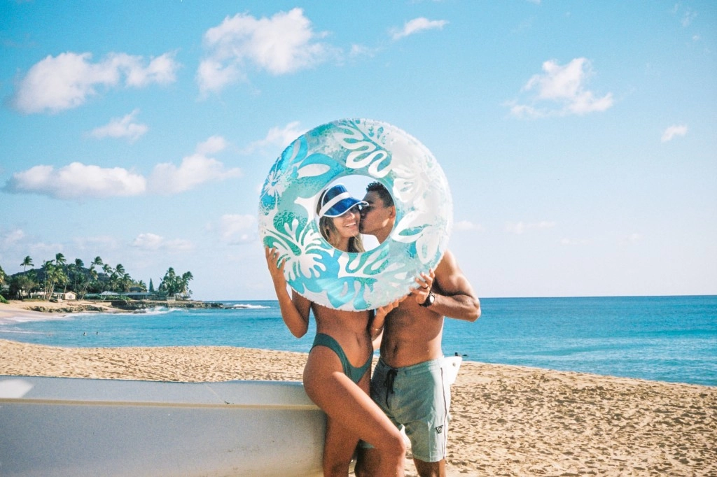 Košais havajiešu ziedu apdruka piešķir vasarai krāsas un lieliski piestāv gan baseinam, gan pludmalei.