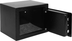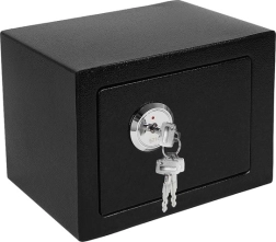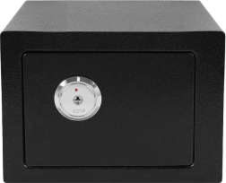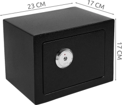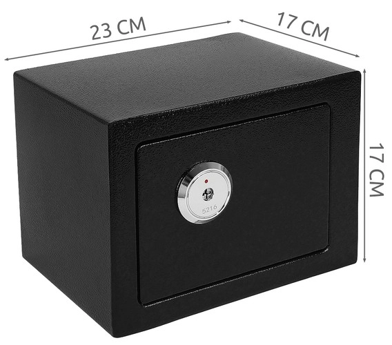 Droši glabājiet savas vērtības ar mūsu kompakto metāla seifu, kas nodrošina maksimālu aizsardzību, pateicoties izturīgajam metāla izpildījumam un atslēgas slēdzenei. Ideāli piemērots lietošanai mājās vai birojā, kā arī viesnīcu numuros, kur tas sniedz mieru un drošību jūsu viesiem.