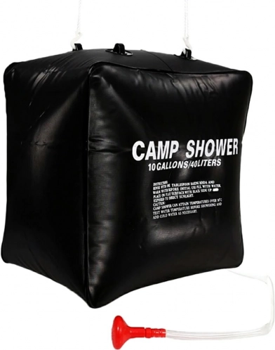 Praktiska saules duša ar ietilpību 40 litri nodrošina siltu ūdeni kempingā, izbraucienos un lauku mājā. Izturīgais materiāls, uzsildīts ar sauli, sasniedz līdz 40 °C; duša ir kompakta, viegla un pateicoties izturīgai virvei to ir viegli iekārt. Ideāli piemērota personīgai higiēnai un trauku mazgāšanai vietās bez tekoša ūdens.