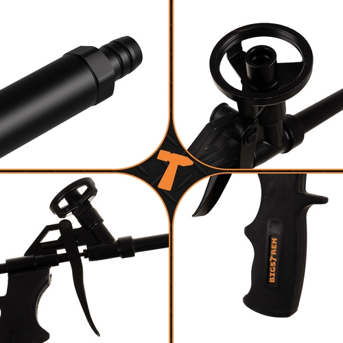 Izturīgs pilnībā metāla korpuss nodrošina uzticamību un ilgu kalpošanas laiku pat intensīvas lietošanas laikā. Ergonomisks rokturis ar neslīdošu virsmu ērti ieguļas rokā un samazina nogurumu ilgstoša darba laikā. Pistole ir saderīga ar lielāko daļu standarta PU putu balonu.