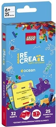 Piedzīvojiet jaunus būvēšanas piedzīvojumus ar tematisko komplektu LEGO Recreate: Izaicinājumu kartes – okeāns. Katrs izvilkums sniedz citu ideju un citu uzdevumu: uzbūvējiet zemūdeni, jūraszirdziņu, dzelkstošu medūzu vai, piemēram, robo-delfīnu. Pateicoties kompaktajiem izmēriem, komplekts ir lieliski piemērots ceļošanai un izklaidēs gan bērnus, gan pieaugušos.