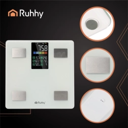Gudrie analītiskie svari RUHHY ar BIA precizitāti mēra līdz pat 226 kg un lietotnē Feelfit parāda līdz 13 ķermeņa rādītājiem. Svars, ĶMI, ķermeņa tauki, ūdens, muskuļi, kauli, viscerālie tauki un citas vērtības būs pārskatāmi redzamas gan LCD displejā, gan tālrunī. Automātiska ieslēgšanās/izslēgšanās, izturīgs rūdītais stikls un 4 elektrodi uzticamai analīzei – ideāli mājas veselības kontrolei.