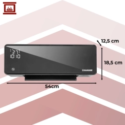 Elegants pie sienas stiprināms gaisa aizkars KAMINER ZELVION apvieno mūsdienīgu dizainu ar jaudīgu veiktspēju mājās, birojos un veikalos. Pateicoties trim režīmiem (ventilācija / silts / karsts gaiss), tas ir ideāli piemērots lietošanai visu gadu. Wi‑Fi vadība (Tuya Smart) un tālvadības pults nodrošina pilnīgu kontroli pār apkuri no jebkuras vietas.
