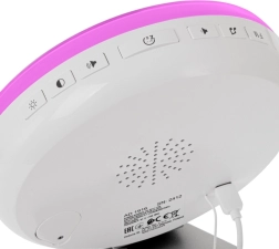 Vakarā novērtēsiet iemigšanas režīmu ar pakāpenisku aptumšošanu un taimeri uz 15/30/60 minūtēm. Seši krāsu režīmi (zila, oranža, indigo, violeta, sarkana, zaļa) veido patīkamu atmosfēru un kalpo arī kā naktslampiņa. Displejam ir 4 spilgtuma līmeņi (augsts/vidējs/zems/izslēgts), lai naktī netraucētu.