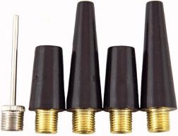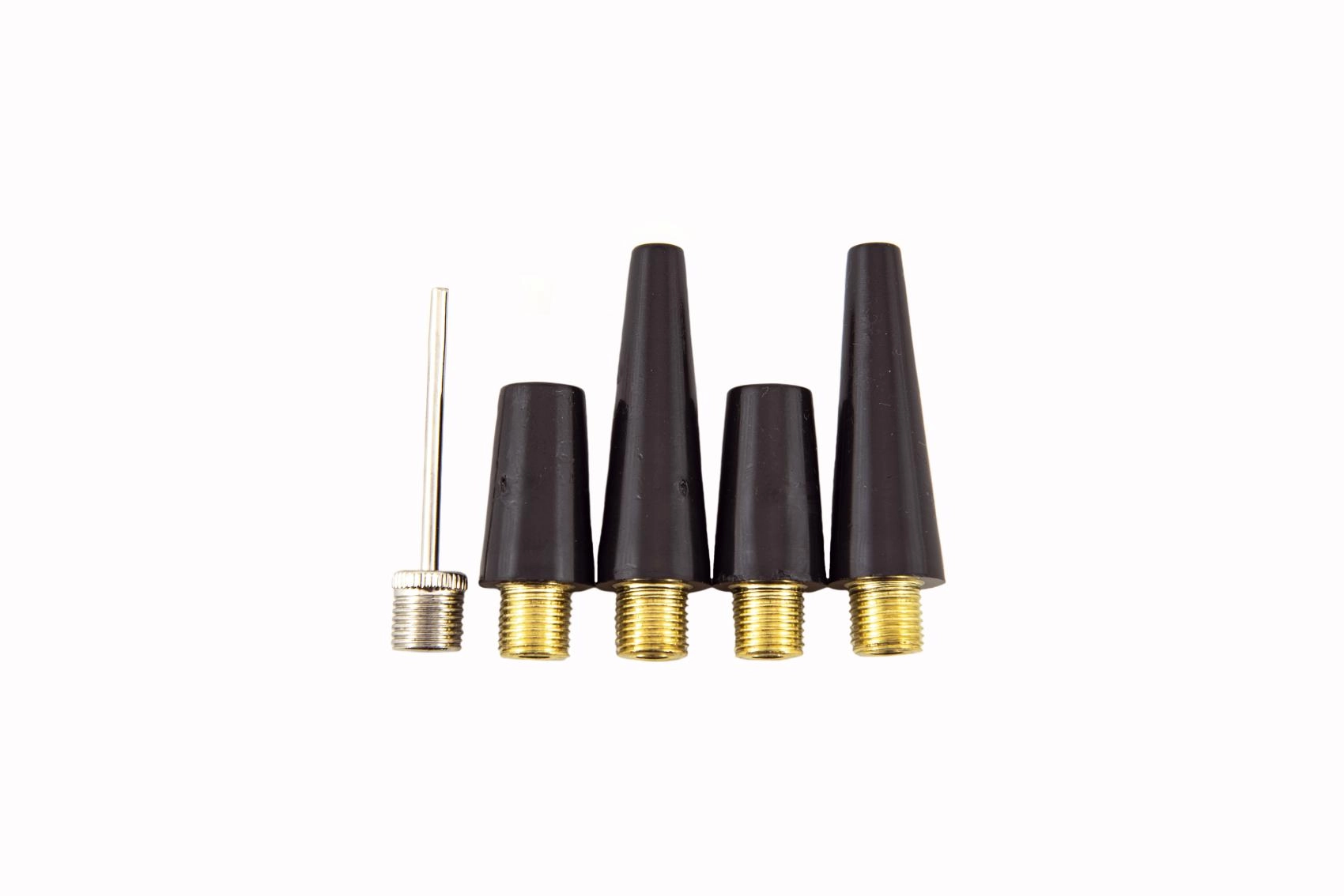 Uzgaļu komplekts, tostarp adatas vārsts un koniskas sprauslas, ļauj piepūst bumbas, rotaļlietas un matračus – pietiek tos uzskrūvēt un sākt darboties.