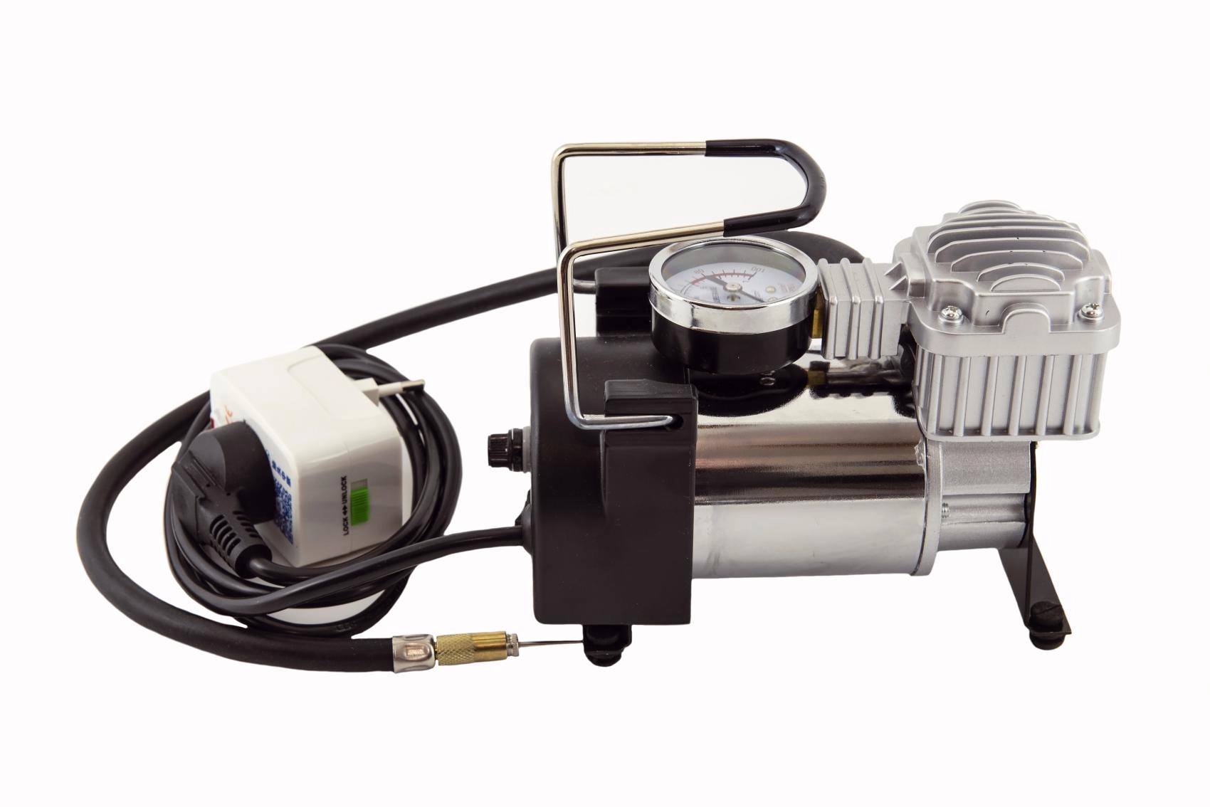 Kompresors tiek darbināts no tīkla 220–230 V ar komplektā iekļauto AC adapteri, tam ir 1,5 m barošanas kabelis, un iepakojumā atradīsiet 2 universālus uzgaļus un adatu plašam pielietojumam. Maksimālais spiediens 150 PSI nodrošina rezervi lielākajai daļai ikdienas piepūšanas darbu mājās un garāžā.