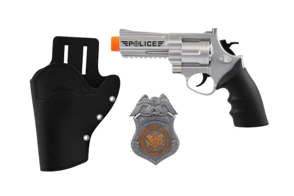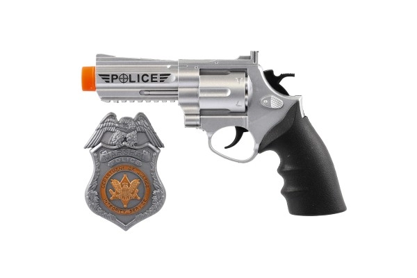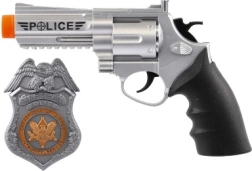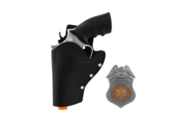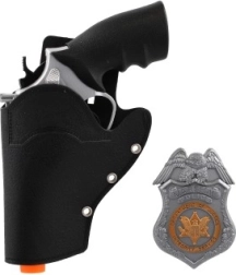Komplekts ietver plastmasas revolveri ar autentiskām detaļām un drošības oranžu uzgali, kas nodrošina drošu spēli.
