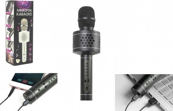 - karaoke mikrofons, USB–Micro USB uzlādes kabelis, audio kabelis, lietošanas instrukcija