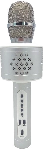 Bezvadu karaoke mikrofons ar Bluetooth ir ideāls mājas ballītēm un dziedāšanai ceļā. Tas piedāvā vienkāršu savienojumu caur Bluetooth, AUX vai TF karti, jaudīgus skaļruņus 2×3 W, skaļuma, mūzikas un atbalss regulēšanu, kā arī ilgu darbības laiku līdz 14 stundām. Sudraba apdare izskatās eleganti un sniedz lielisku izklaidi visai ģimenei.