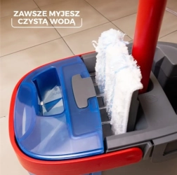 Praktisks spainis ar ergonomisku rokturi atvieglo pārnēsāšanu, iztukšošanu un mopa skalošanu, kamēr atsevišķās kameras nodrošina tīrību.