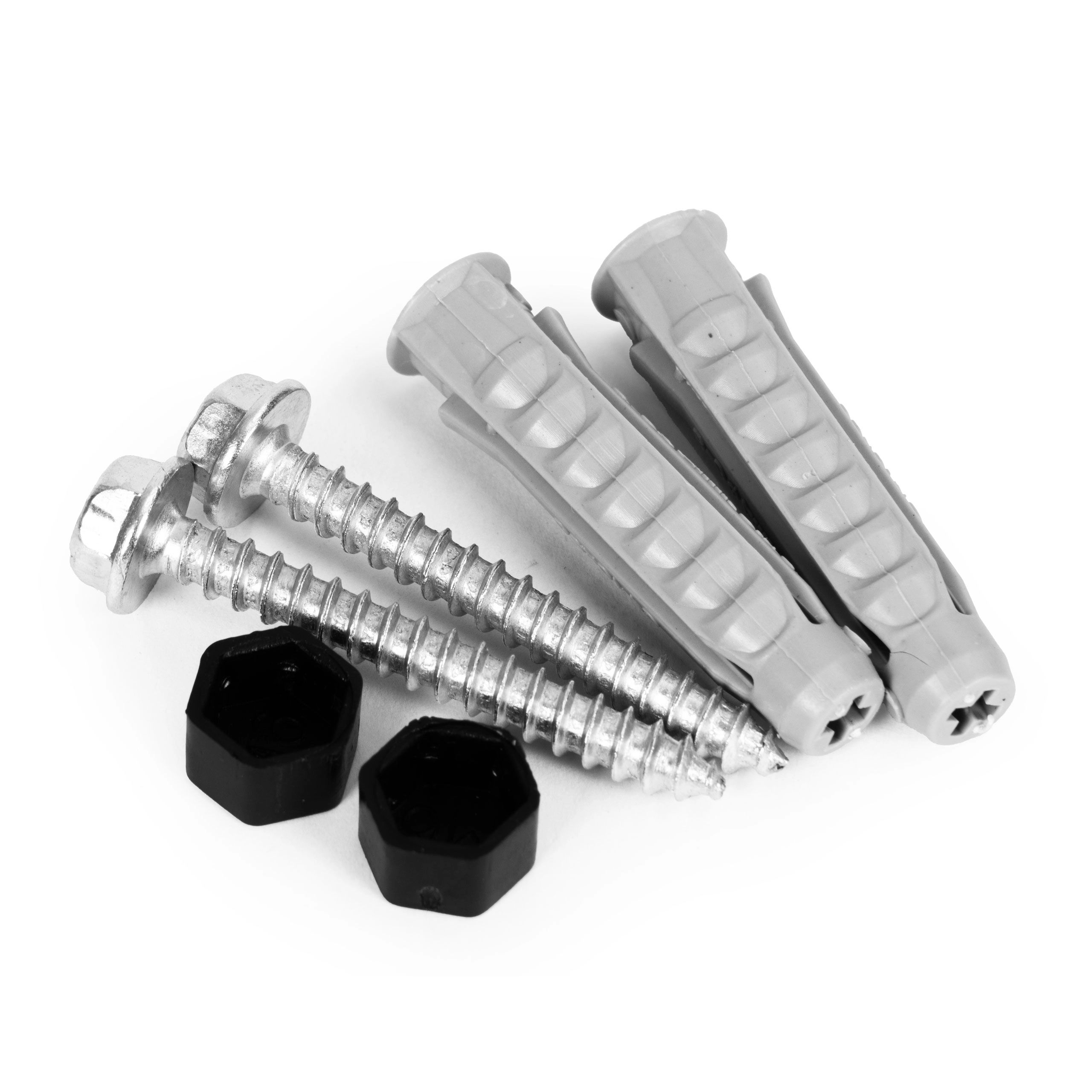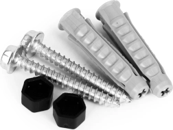 Montāžas atveres, skrūves, dībeļi un vāciņi ir iekļauti komplektā. Ātra un droša uzstādīšana uz vairuma sienu tipu.