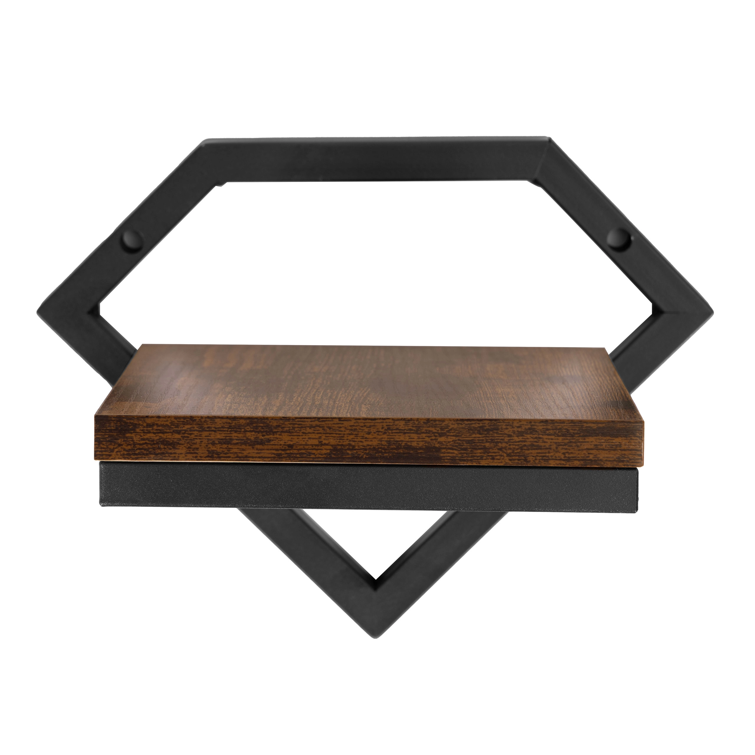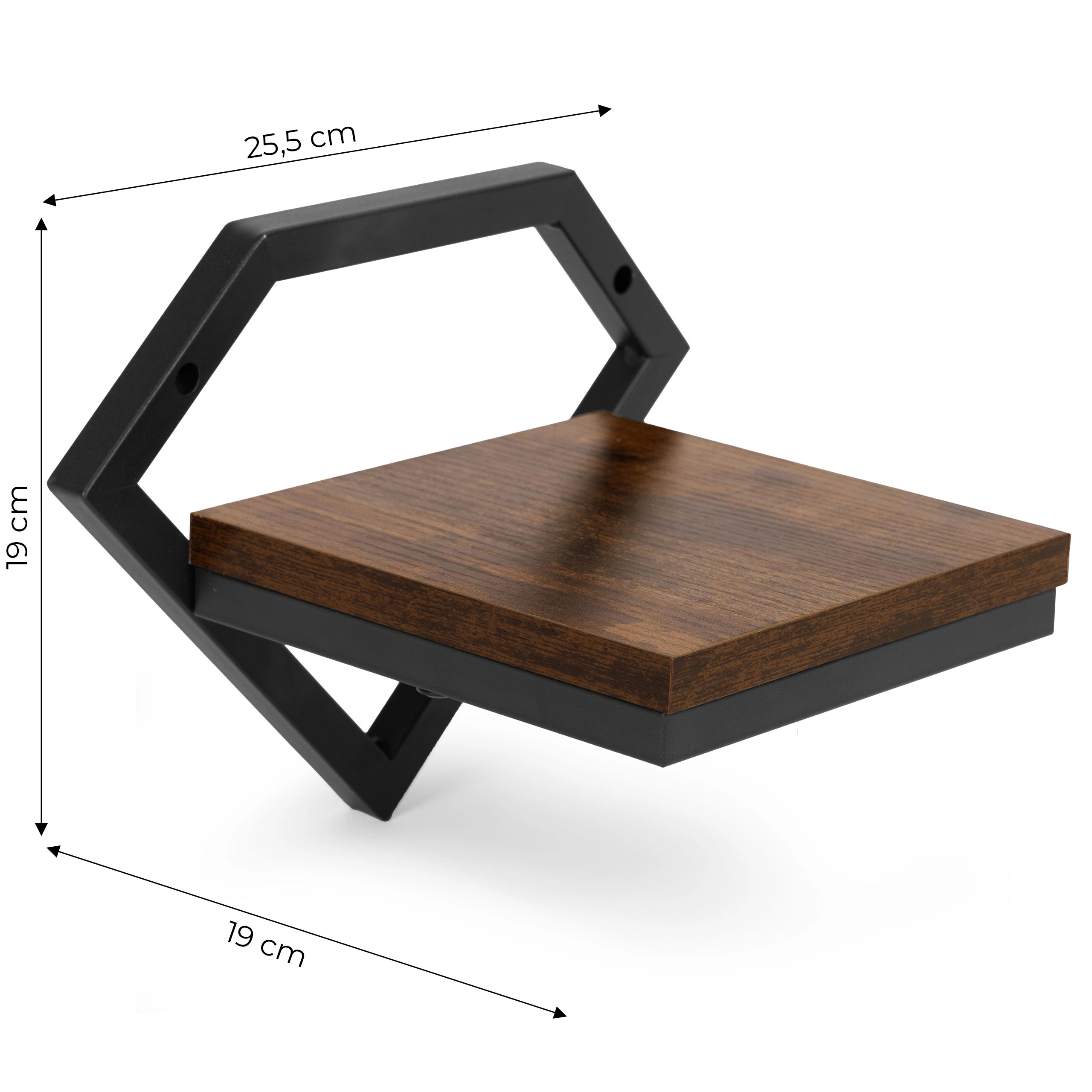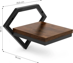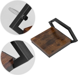 Pulverkrāsota tērauda rāmis ir izturīgs pret koroziju un mehānisko nolietojumu, bet skaidu plātnes (laminēta) plaukts koka dekorā piešķir siltumu un kontrastu. Iepakojumā ir iekļauts pilns montāžas komplekts (dībeļi, skrūves un vāciņi), tāpēc viss nepieciešamais ir uzreiz pa rokai.