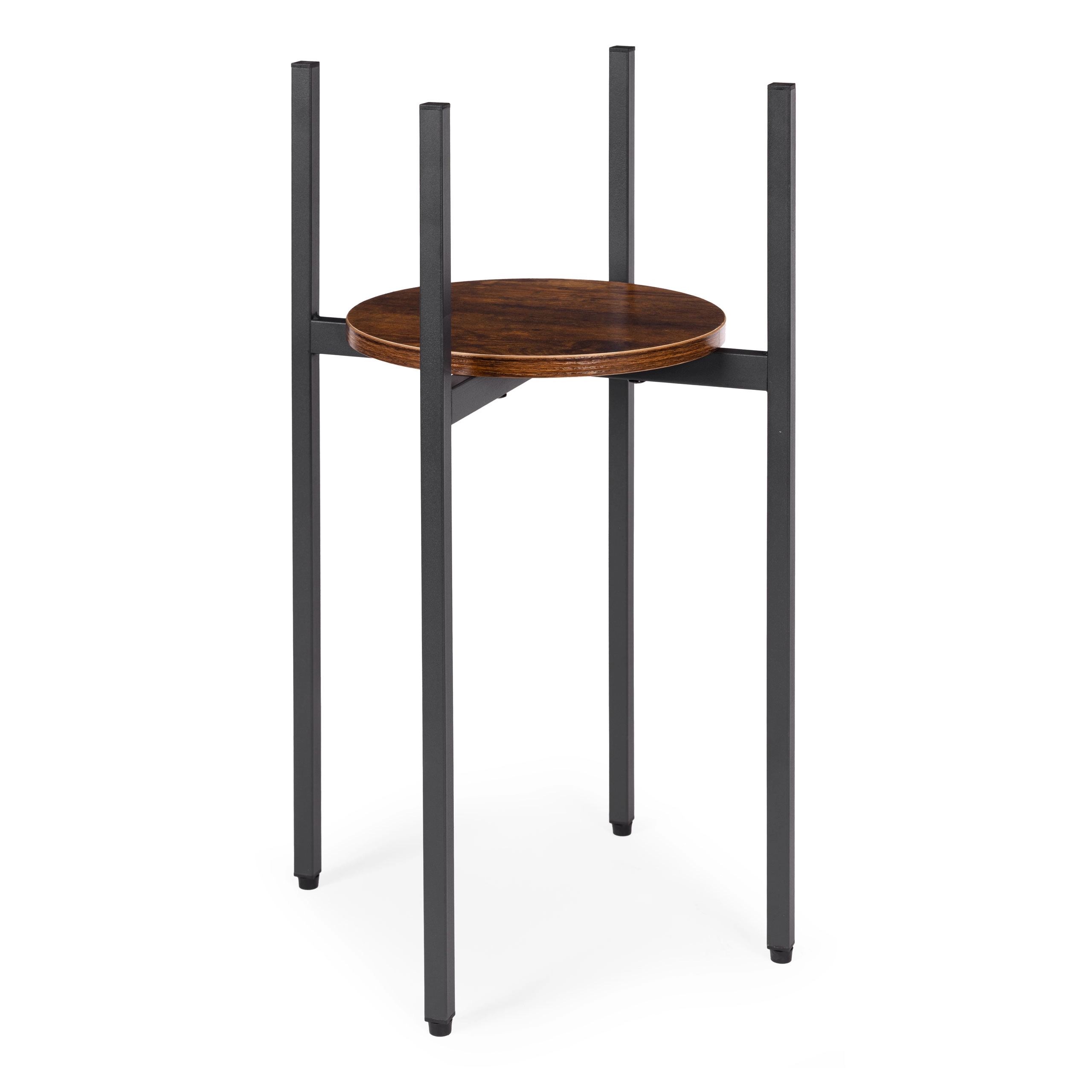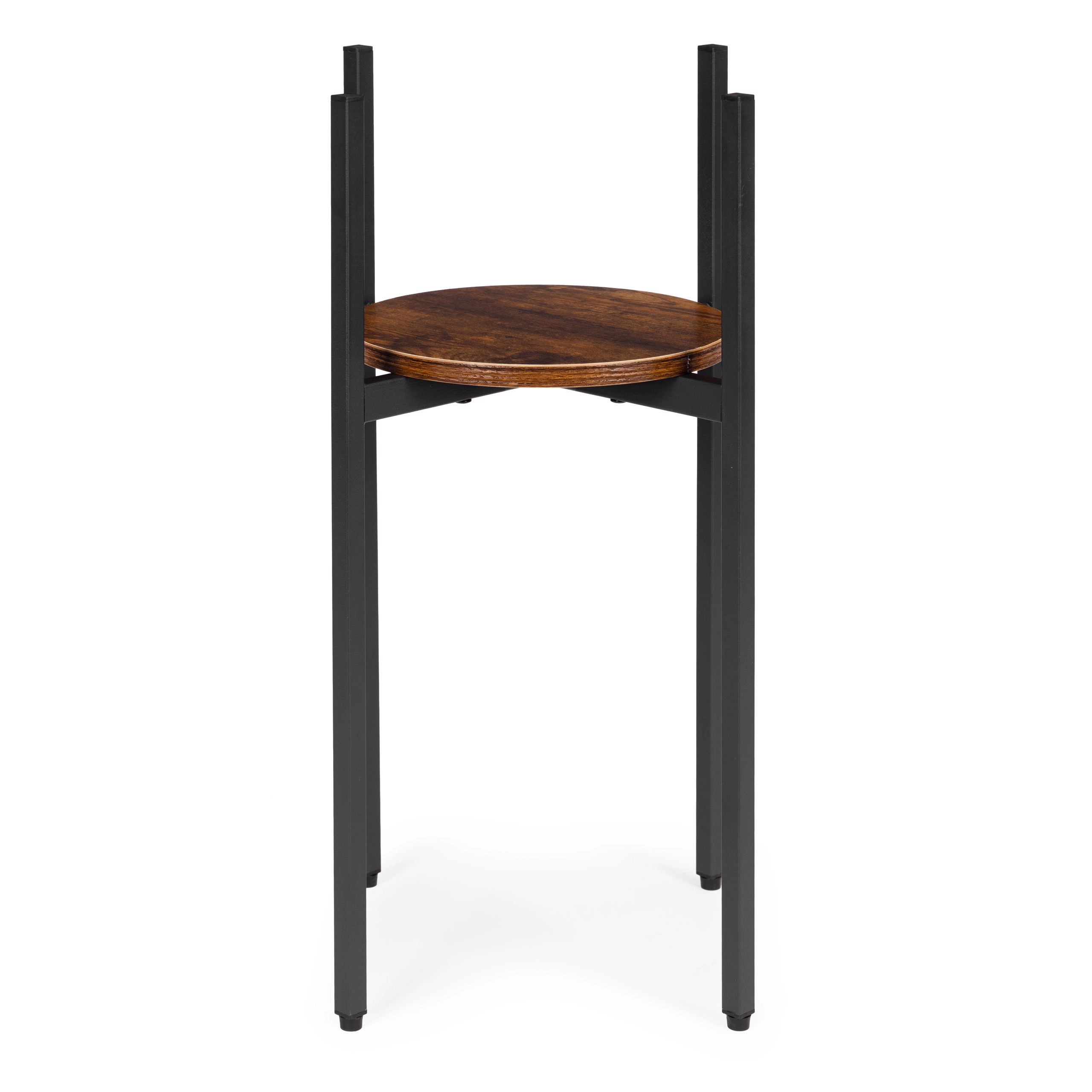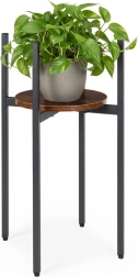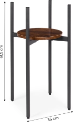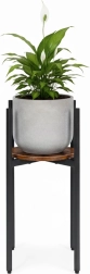 Šis augstais industriālā stila puķu statīvs izceļ jūsu augus un interjeram piešķir gaisīgumu un eleganci. Pulverkrāsots tērauds ir izturīgs pret koroziju un skrāpējumiem, savukārt apaļais skaidu plātnes plaukts dabīgā koka dekorā uzsver loft raksturu. Pateicoties slaidajam pamatam, tas viegli iederas mazās zonās pie loga, pie dīvāna vai priekštelpā.