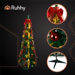 Izbaudiet Ziemassvētku burvību bez liekas piepūles. RUHHY koks ir ar gudru pop-up konstrukciju, tāpēc to varat uzstādīt un salocīt dažu mirkļu laikā. Eleganta zelta un sarkanā kombinācija izskatās svinīgi un mūžīgi, lieliski iederas viesistabā, birojā un arī mazākos dzīvokļos.