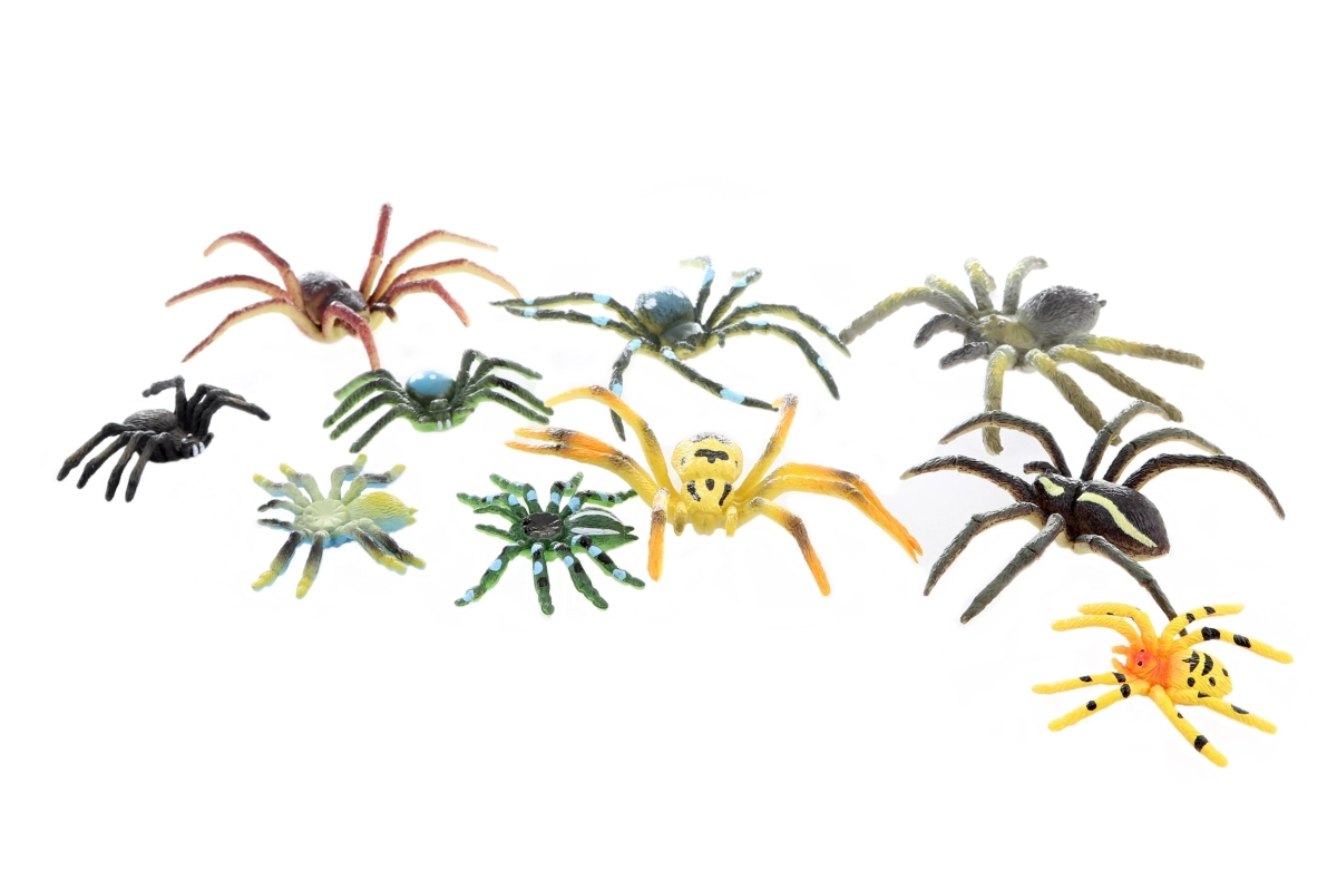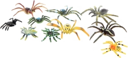 Izklaidējošs plastmasas zirnekļu komplekts bērniem no 3 gadu vecuma. Iepakojumā atradīsiet 10 reālistiskus zirnekļus apmēram 6 cm izmērā, ideāli piemērotus spēlēm, kolekcionēšanai vai kā rekvizītiem ballītēm un Helovīnam. Izturīga plastmasa un drošs izpildījums veicina fantāziju un radošas spēles.