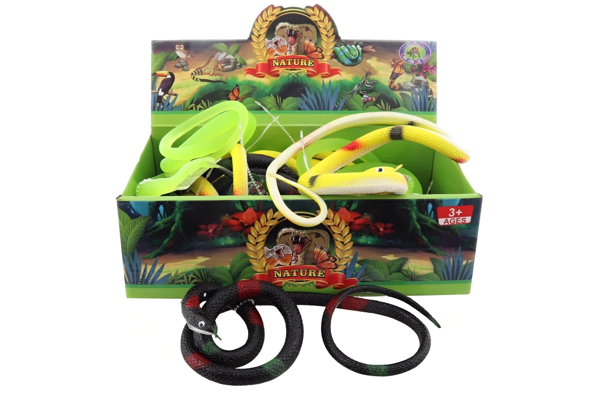 Izklaidējoša gumijas čūska ar reālistisku izskatu iepriecinās gan mazos, gan lielos dzīvnieku mīļotājus. Pateicoties elastīgajam materiālam, to ir viegli stiept un grozīt, veicinot radošu spēli un iztēli. Ideāli piemērota kā dāvana, bērnu rotaļām un tematiskiem svētkiem. Elastīgs materiāls, garums apmēram 90 cm, piemērots no 3 gadu vecuma.