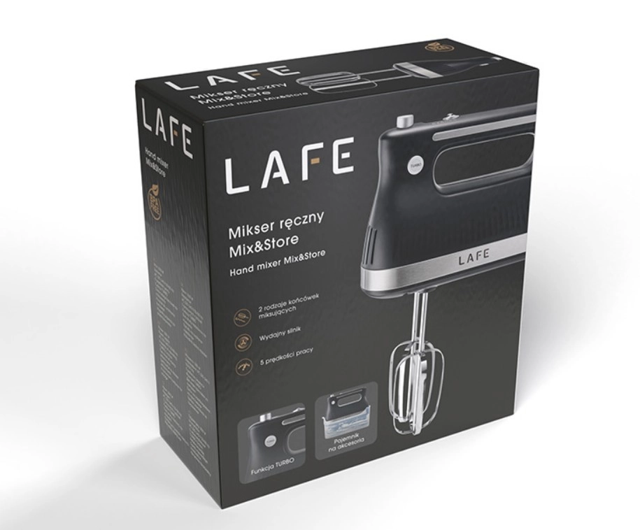 Rokas mikseris LAFE Mix&Store ir uzticams palīgs ikdienas cepšanai un gatavošanai. Tas piedāvā 500 W jaudu, 5 ātrumus un Turbo funkciju papildu jaudai. Komplektā atradīsiet 2 veidu uzgaļus (putošanas slotiņas un mīklas āķus), kā arī praktisku uzglabāšanas kasti, lai viss vienmēr būtu pa rokai un kārtībā.