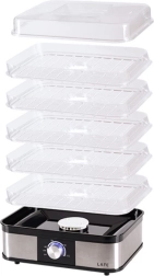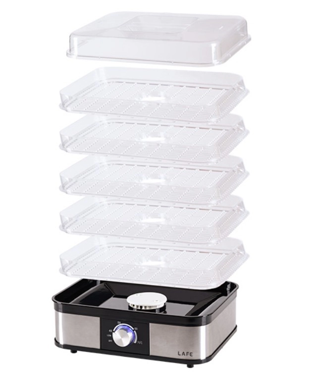 Caurspīdīgie līmeņi atvieglo procesa kontroli, bet 5 ietilpīgie paplāksņi ļauj žāvēt lielāku daudzumu izejvielu vienlaikus. Ja nepieciešams ietaupīt vietu, dažas paplāksnes var vienkārši izņemt. Integrētais ventilators un perforētās paplāksnes veicina cirkulāciju, novērš pelējuma veidošanos un saīsina žāvēšanas laiku.