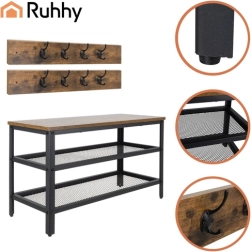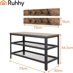 Augšējā brūnā MDF virsma piešķir interjeram siltu akcentu un ērtu vietu apsēsties, lai apautu apavus. Pateicoties kompaktajiem izmēriem 73 × 44 × 30 cm, lieliski iederas arī mazākās telpās. Montāžu var paveikt aptuveni 15 minūtēs – iepakojumā ir pilns montāžas komplekts, tostarp skrūvgriezis un imbusatslēga.