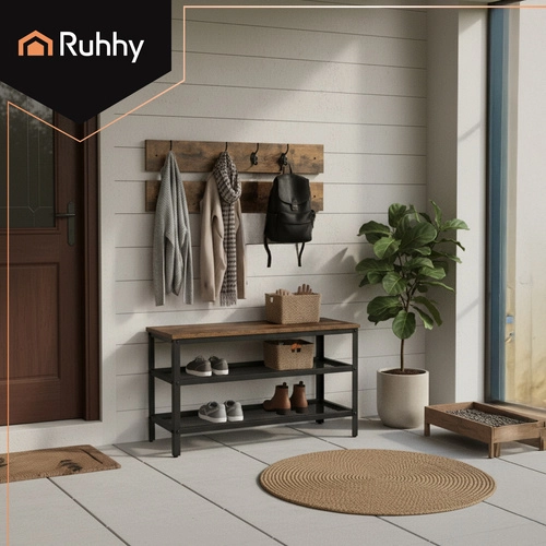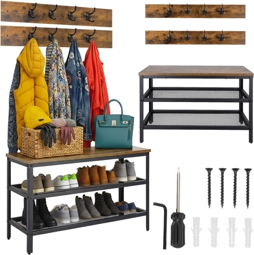 Stils, kārtība un funkcionalitāte vienā. Šis 2-in-1 organizētājs apvieno apavu plauktu, soliņu un pakaramo kompaktā risinājumā, kas ideāli piemērots priekštelpām, koridoriem un garderobēm. Gaisīgas restotas plauktu virsmas veicina gaisa cirkulāciju, tādējādi samazinot mitrumu un apavu aromātu, kamēr tērauda rāmis ar pulverkrāsojumu nodrošina ilgmūžību.