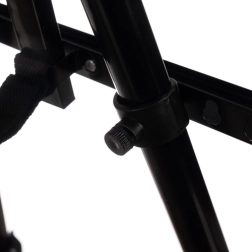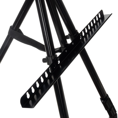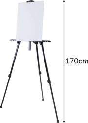 Teleskopiskās kājas, fiksatori un augšējā skava droši notur audeklu. Piemērots gleznošanai sēdus un stāvus, viegli salokāms ceļošanai.