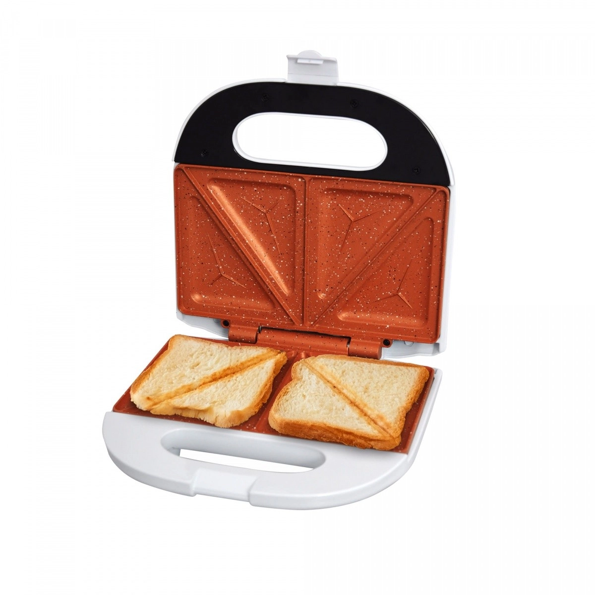 Divas trīsstūrveida plāksnes vienmērīgi apcep gan maizi, gan pildījumu. Ideāli ātrām brokastīm, uzkodām vai vakariņām.