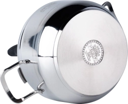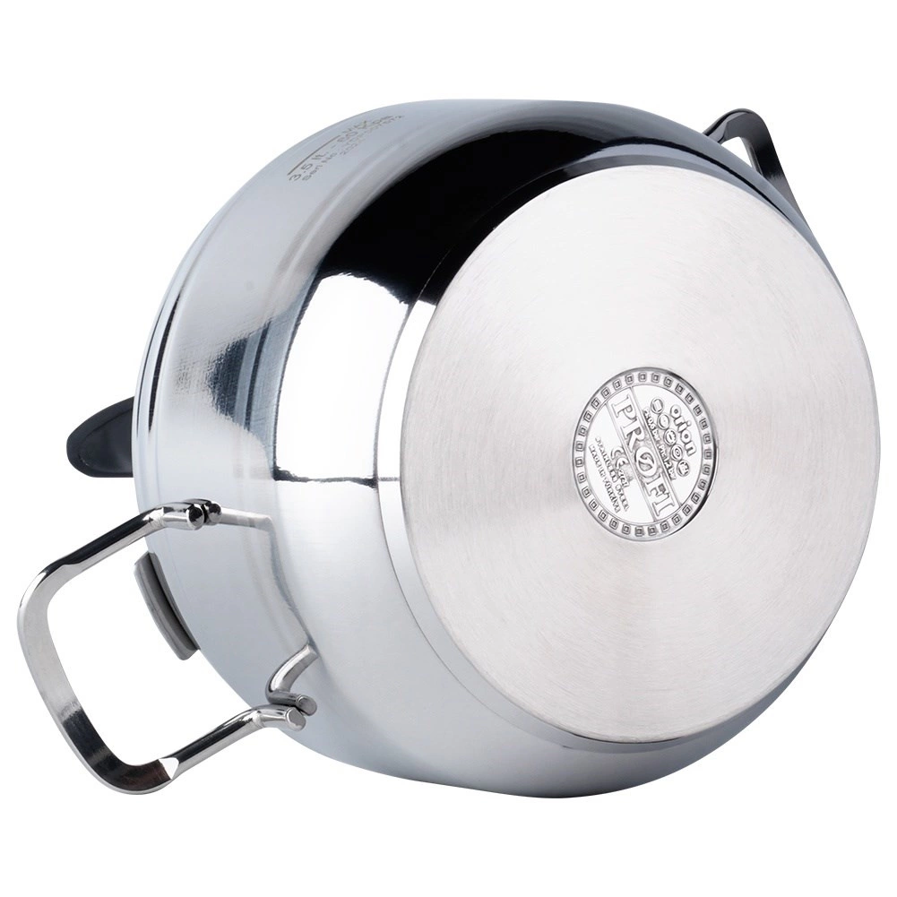Pateicoties 3 slāņu sendviča dibenam, tiek nodrošināta vienmērīga siltuma izkliede un stabilitāte uz visiem plīts veidiem, tostarp indukcijas. Katlu ir viegli kopt – trauku var mazgāt trauku mazgājamajā mašīnā (bez vāka). Oriģināls ORION zīmola produkts, ražots saskaņā ar Eiropas standartiem.
