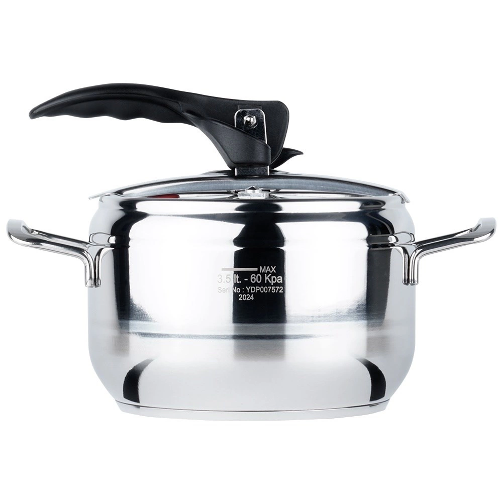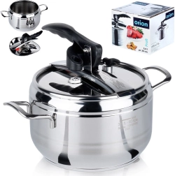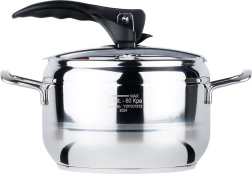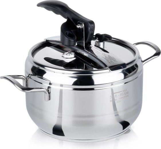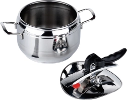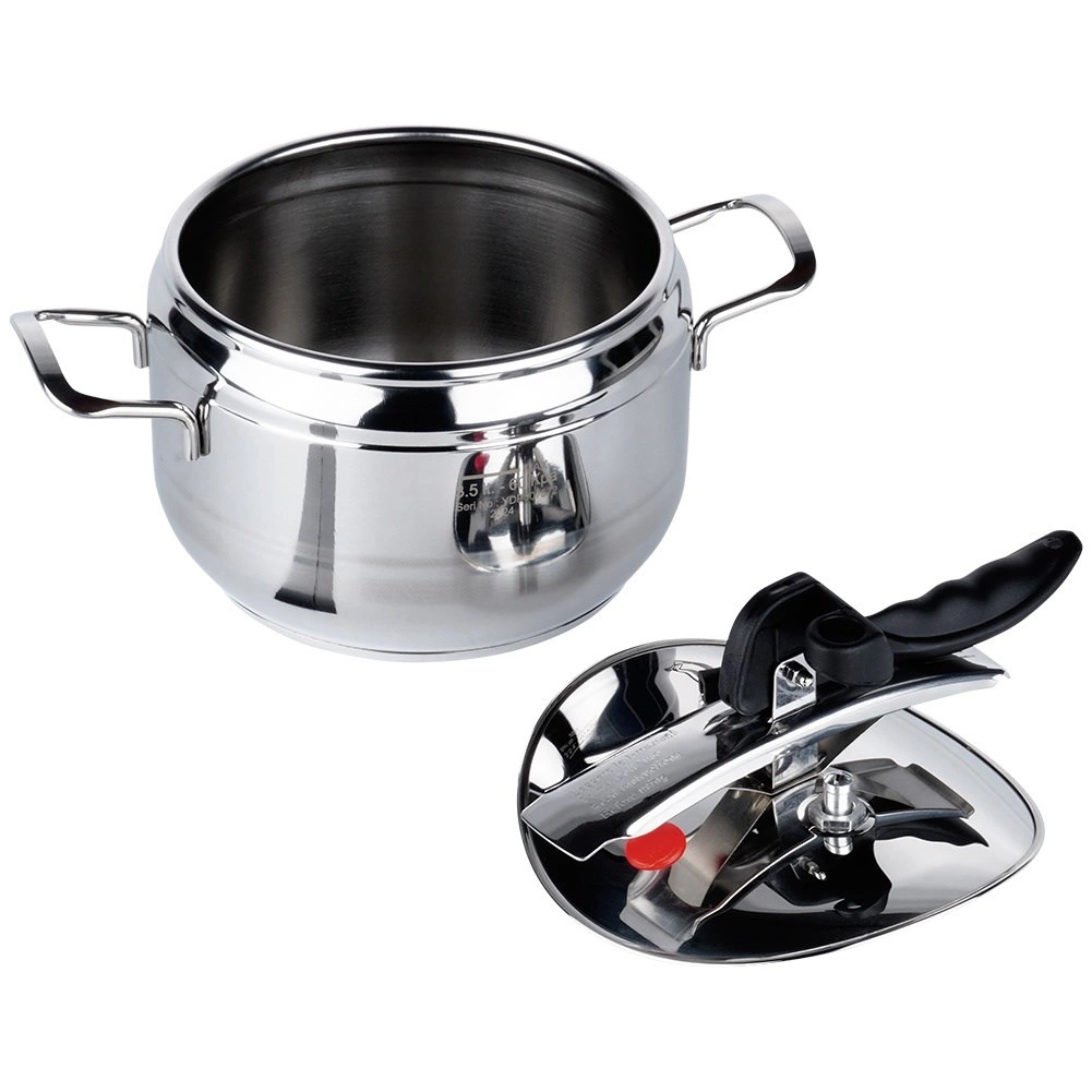 Kompakts nerūsējošā tērauda spiediena katls ar tilpumu 3,5 l ātrai, ekonomiskai un veselīgai gatavošanai zem spiediena. Pateicoties 3 slāņu dibenam, spiediena regulācijai un diviem drošības vārstiem tas saīsina gatavošanas laiku un taupa enerģiju. Piemērots gāzei, elektrībai, keramikai, halogēnam un indukcijai, un trauku (bez vāka) var mazgāt trauku mazgājamajā mašīnā.