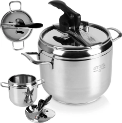 Divkārša drošības aizsardzība, iespēja regulēt spiedienu un uzticama vāka aizslēgšana mierīgai gatavošanai.