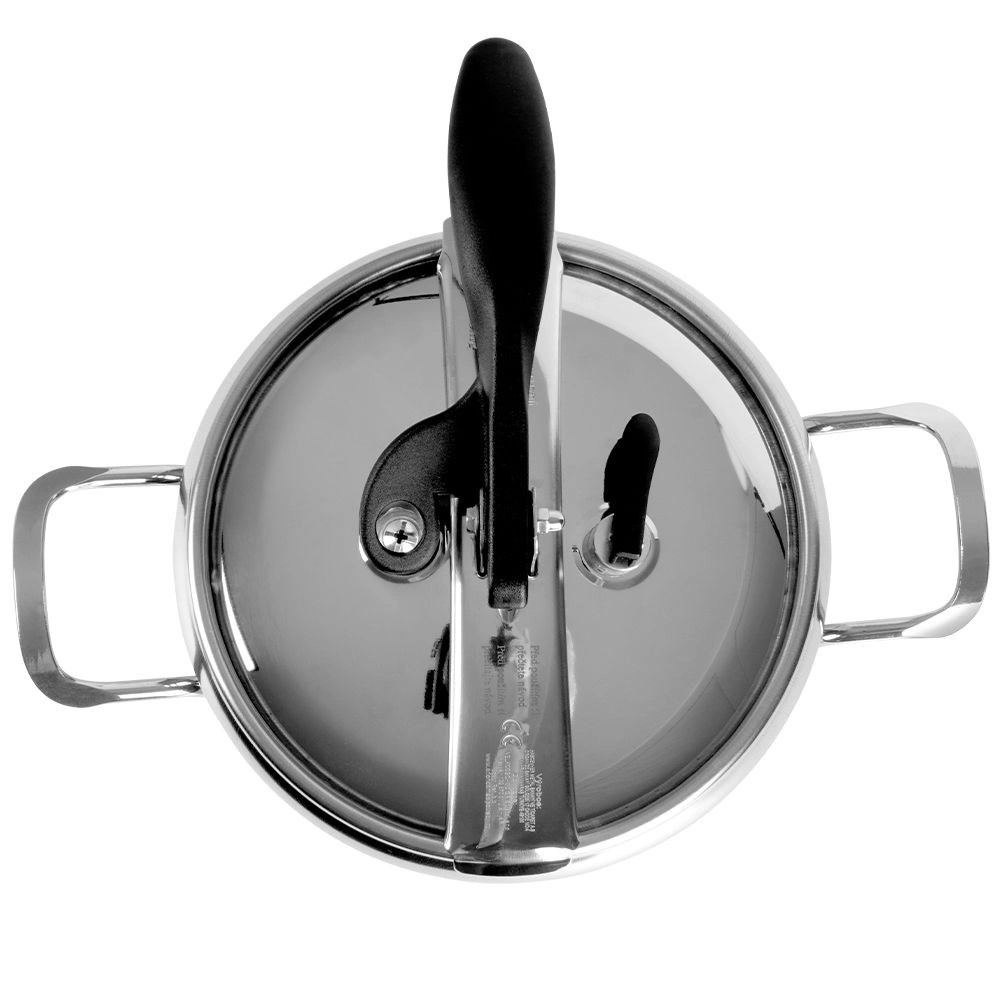 Ātra un veselīga gatavošana zem spiediena jebkurā brīdī, kad tas nepieciešams. Šis 5 l nerūsējošā tērauda spiediena katls piedāvā ātru ēdienu pagatavošanu, enerģijas ietaupījumu un drošu lietošanu pateicoties diviem drošības vārstiem un uzticamajai bloķēšanas sistēmai. Piemērots visiem plīts veidiem, tostarp indukcijai, ar trīsslāņu pamatni vienmērīgai siltuma sadalei.