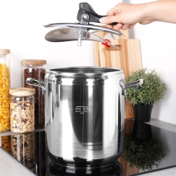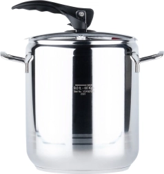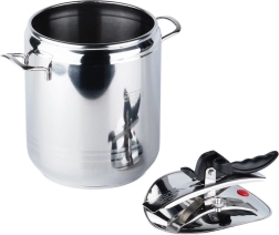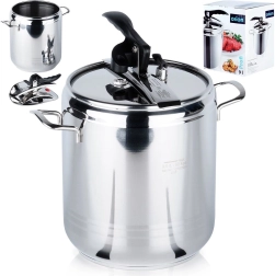 Masīva konstrukcija no kvalitatīva nerūsējošā tērauda, 3 slāņu sendviča dibens vienmērīgai siltuma sadalei un spiediena regulēšanas iespēja nodrošina lieliskus rezultātus uz gāzes, elektriskajām, stikla keramikas, halogēna un indukcijas plītīm. Katls ir viegli lietojams, un pateicoties diviem drošības vārstiem un uzticamam aizvēršanas mehānismam, gatavosiet ar mierīgu prātu. Korpuss ir piemērots trauku mazgājamajai mašīnai (vāku iesakām mazgāt ar rokām).