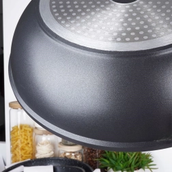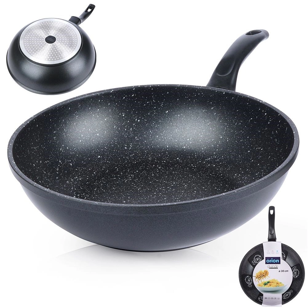 Vokpanna GRANDE 30 cm apvieno masīvu alumīnija korpusu ātrai un vienmērīgai siltuma izkliedei ar izturīgu nelīpošu granīta slāni, kas atvieglo gan gatavošanu, gan tīrīšanu. Ideāli piemērota apcepšanai, cepšanai eļļā un sautēšanai gaļas un dārzeņu ēdieniem, kā arī lieliski der āzijas virtuves iedvesmotiem ēdieniem, tostarp ātrajām nūdelēm un stir-fry.