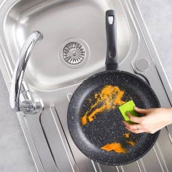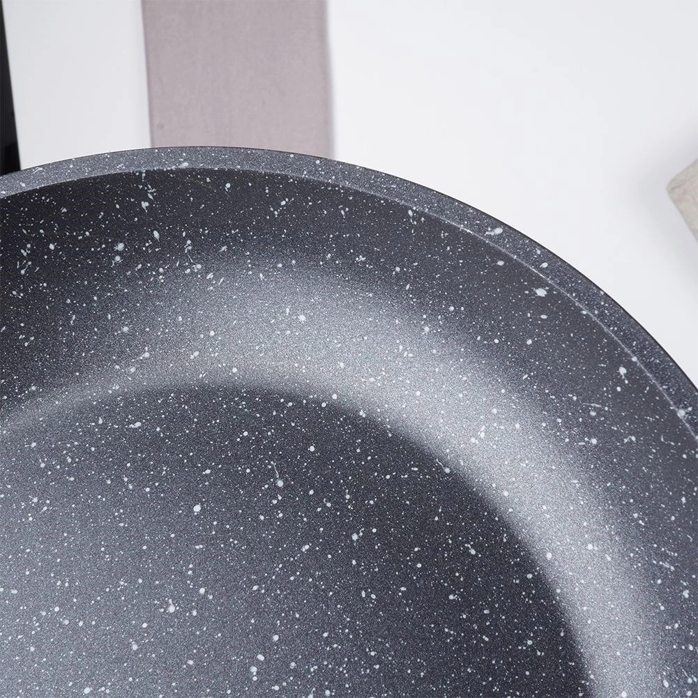 Speciālais granīta pārklājums bez PFOA un PTFE ļauj gatavot ar minimālu eļļas daudzumu, nodrošina vieglu ēdienu atdalīšanos un ātru tīrīšanu. Indukcijas pamatne efektīvi izplata siltumu, taupa enerģiju un uztur stabilu temperatūru gan cepot, gan sautējot.