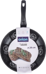 Granitna panna ORION Grande 28 cm apvieno masīvu alumīnija liejumu ar izturīgu nelīpošu pārklājumu, kas nodrošina vienmērīgu cepšanu bez piedegšanas. Pateicoties augstākām malām, tā ir ideāli piemērota sulīgiem steikiem, kraukšķīgiem dārzeņiem un gaisīgām pankūkām. Laikmetīgs akmens izskats papildinās jebkuras virtuves stilu.