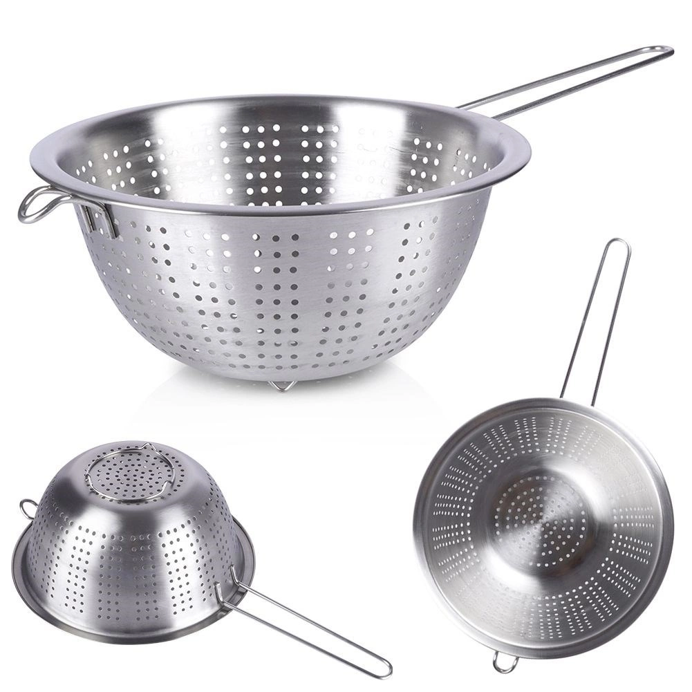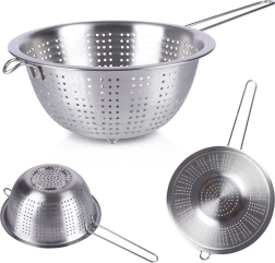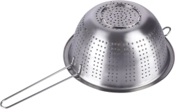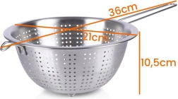 Universāls nerūsējošā tērauda cedītis ar 21 cm diametru un garu rokturi ir ideāls makaronu notecināšanai, augļu un dārzeņu skalošanai un šķidrumu nolaišanai. Pateicoties stabilām kājiņām un palīgāķim, to var ērti atbalstīt pret katlu vai bļodu. Izgatavots no kvalitatīva nerūsējošā tērauda ilgai kalpošanai un vieglai kopšanai.