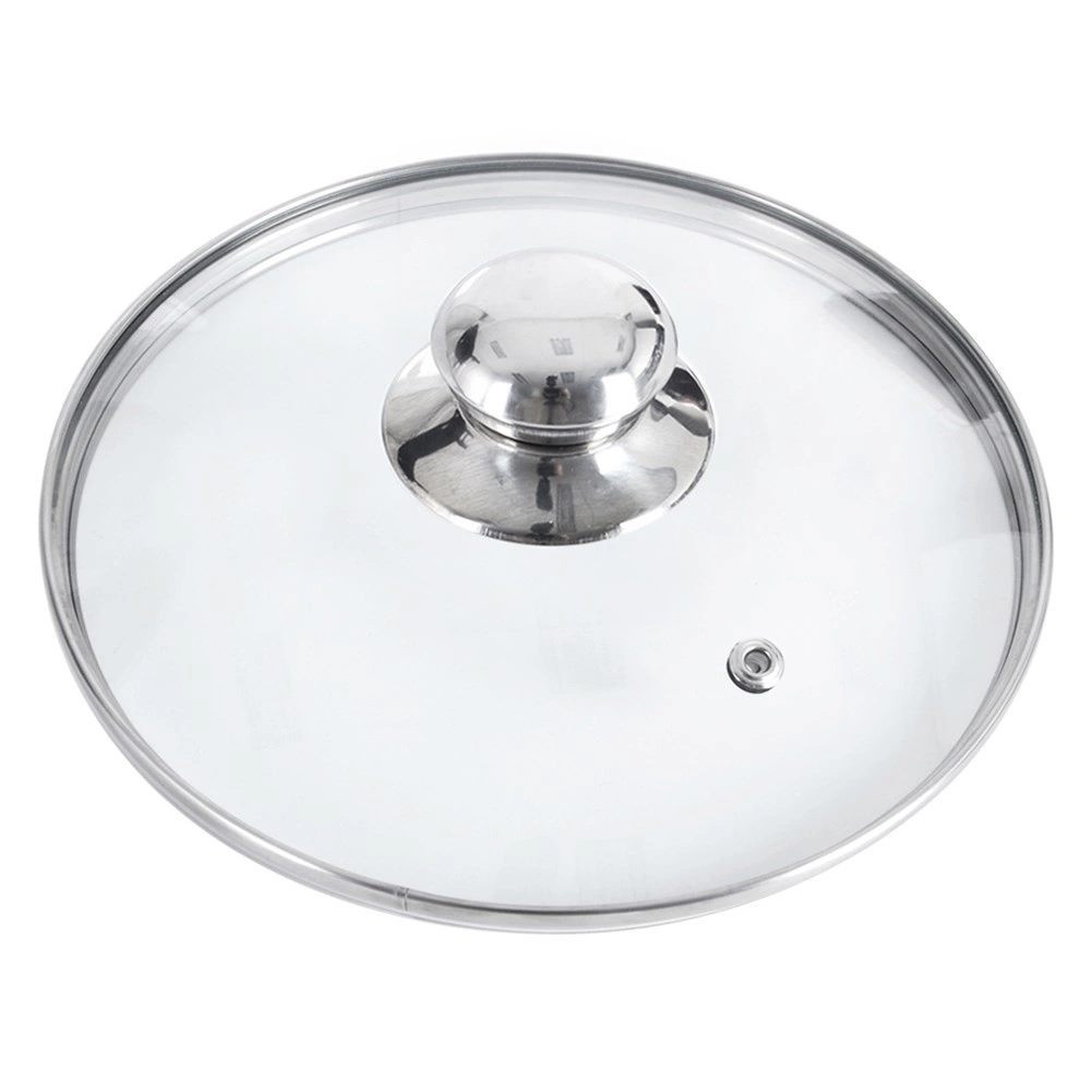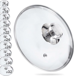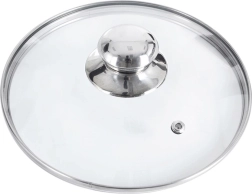 Universāls stikla vāks ar 20 cm diametru, nerūsējoša tērauda malu un ērtu rokturi. Pateicoties caurspīdīgajam stiklam, jums ir pilnīga kontrole pār gatavošanu, ventilācijas atvere nodrošina drošu tvaika izplūdi, bet izturība līdz 200 °C ir ideāla ikdienas lietošanai. Izkumpis profils veicina siltuma cirkulāciju, bet ciešā mala novērš tvaika zudumus un kondensāta notecēšanu ārpus trauka.