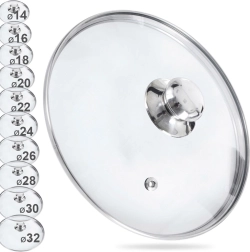 Universāls stikla vāks ar diametru 28 cm ar izturīgu nerūsējoša tērauda malu, ērti satveramu metāla rokturi un tvaika ventili. Karstumizturīgais stikls ļauj vērot gatavošanu bez vāka pacelšanas, viegli ieliektais profils veicina karstā gaisa cirkulāciju, bet ciešā piekļuve samazina tvaika zudumus un šļakstīšanos. Piemērots katliem, pannām un sautējamajiem katliem.
