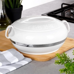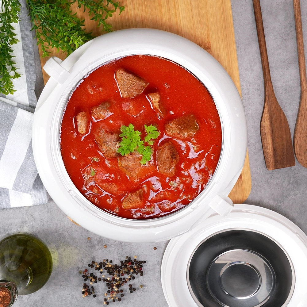 Pateicoties kvalitatīvai izolācijai un nerūsējošā tērauda ieliktnim, termotrauks ORION Deluxe saglabā jūsu ēdienu siltu vai vēsu ilgāk – ideāli gan pasniegšanai, gan pārnēsāšanai.