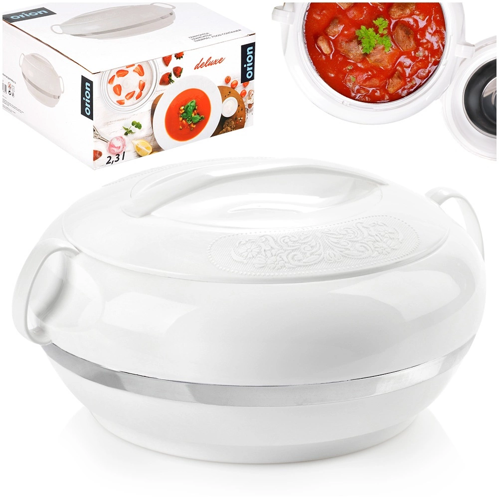 Elegantais termotrauks ORION Deluxe ir lielisks palīgs ikdienas maltītēm un nedēļas nogales svinībām. Tas uztur sagatavoto ēdienu, zupu vai piedevu temperatūru līdz pat divām stundām, bet vasarā noderēs arī saldējuma vai desertu uzglabāšanai vēsumā. Iekšējā gludā nerūsējošā tērauda virsma ir viegli tīrāma un higiēniska.