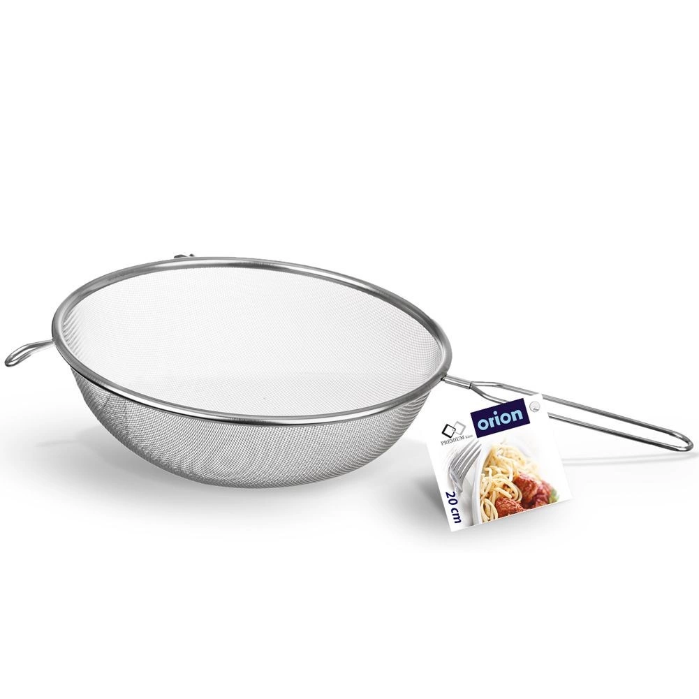 Ergonomiskais garais rokturis nodrošina drošu satvērienu, savukārt divi īsāki atbalsta āķi ļauj stabili novietot sietu uz bļodas vai katla malas. Lielais 20 cm diametrs ļauj apstrādāt lielāku produktu daudzumu vienlaikus — no rīsu un pākšaugu skalošanas līdz makaronu un dārzeņu notecināšanai vai ēdienu gatavošanai tvaicējot.