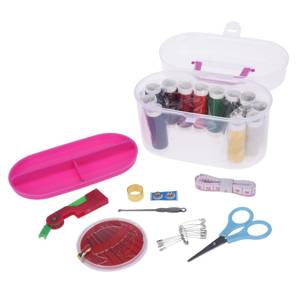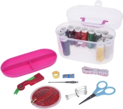 Praktisks šūšanas komplekts ar 50 detaļām pārnēsājamā organizatorā. Ietver krāsainus diegus, adatas, mazās šķērītes, drēbnieka mērlenti, pogas, pirkstaiņu, diega ievērēju un droselīšadatas. Vieglā, caurspīdīgā kārbiņa ar klipsi ir ideāla ceļošanai un mājas remontiem. Izturīgi un elastīgi diegi atvieglo ātru piešūšanu un apģērba pielāgojumus.
