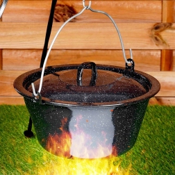 Šis emaljētais vāks ir ideāls papildinājums āra gatavošanai katlā – no gulaša līdz zupām. Tas der ungāru katliem ar ietilpību 9,5 l un, pateicoties kupolveida formai, efektīvi saglabā siltumu un mitrumu, saīsinot gatavošanas laiku un uzlabojot ēdienu garšu.