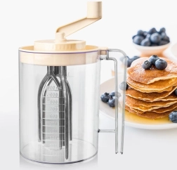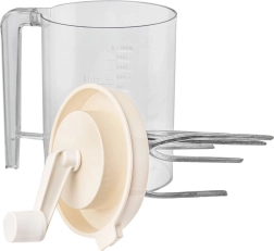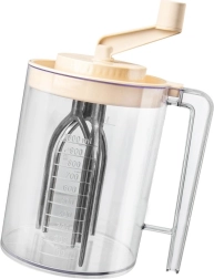 Praktisks rokas mikseris ar rokturi-griezni un integrētu 1,5 l mērkrūzi ērtai putošanai, maisīšanai un mīklas pagatavošanai. Pateicoties caurspīdīgajam traukam ar precīzu skalojumu ml un litros, stingrai rokturim un šļakatu necaurlaidīgam vākam, ātri un tīri pagatavosiet putukrējumu, olbaltumu sniegu, pankūku mīklu un mērces. Mehāniska darbība bez elektrības, izturīgi materiāli un vienkārša apkope padara šo mikseri par uzticamu palīgu jebkurā virtuvē.