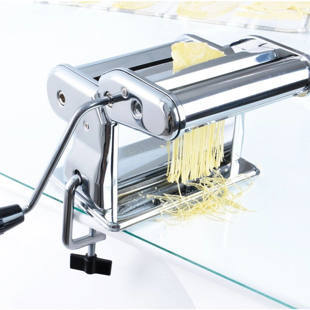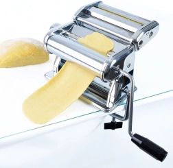Mājas makaronu gatavošana vēl nekad nav bijusi vienkāršāka. Šī rokas makaronu mašīna piedāvā līdz pat 9 biezuma iestatījumiem, nerūsējošā tērauda veltņus un stabilu skrūvspīļu stiprinājumu pie virsmas. Komplektā atradīsiet stendu, 3 maināmus uzgaļus (katrs ar divām funkcijām), 2 rullīšus un rokturi – varēsiet pagatavot spageti, fettuccine, lazanjas plāksnes, nūdeles un ravioli tieši pēc savas gaumes.