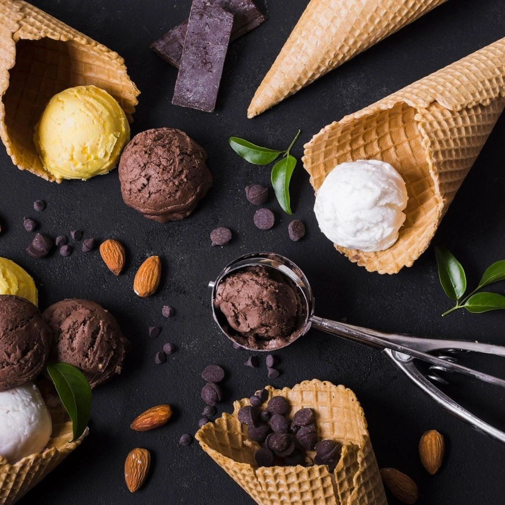 - Saldējums, kartupeļu biezenis, rīsi, mīkla